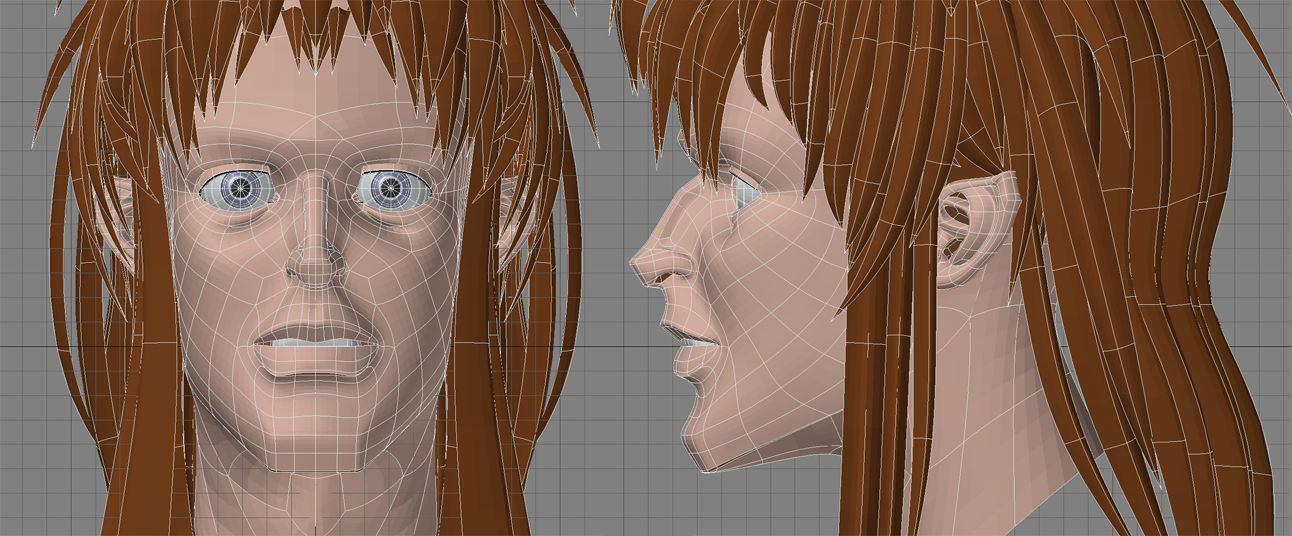 The head of one of my comic book characters, modeled in 3d and rendered in the style of a cel.